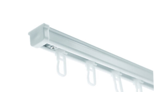 Profil aluminiowy w kompletnym zestawie to pojedyncza szyna sufitowa w kolorze białym, wyposażona we wszystkie niezbędne akcesoria. W zestawie znajdują się: szyna, wsporniki, agrafki, zaślepki z blokadą oraz zestaw montażowy. Uniwersalny kolor i wytrzymały materiał zapewniają szerokie możliwości aranżacyjne. Szyna umożliwia swobodny montaż – może być instalowana pojedynczo lub jedna za drugą, w dowolnej odległości.